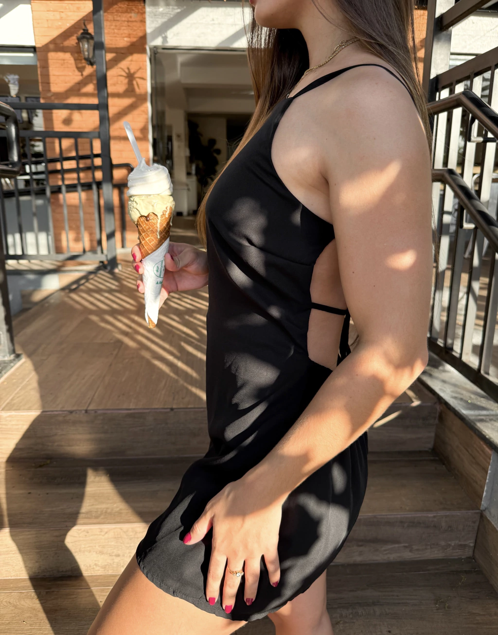 medida da peça fechada, sem considerar o elástico na cintura e o ajuste nas costas